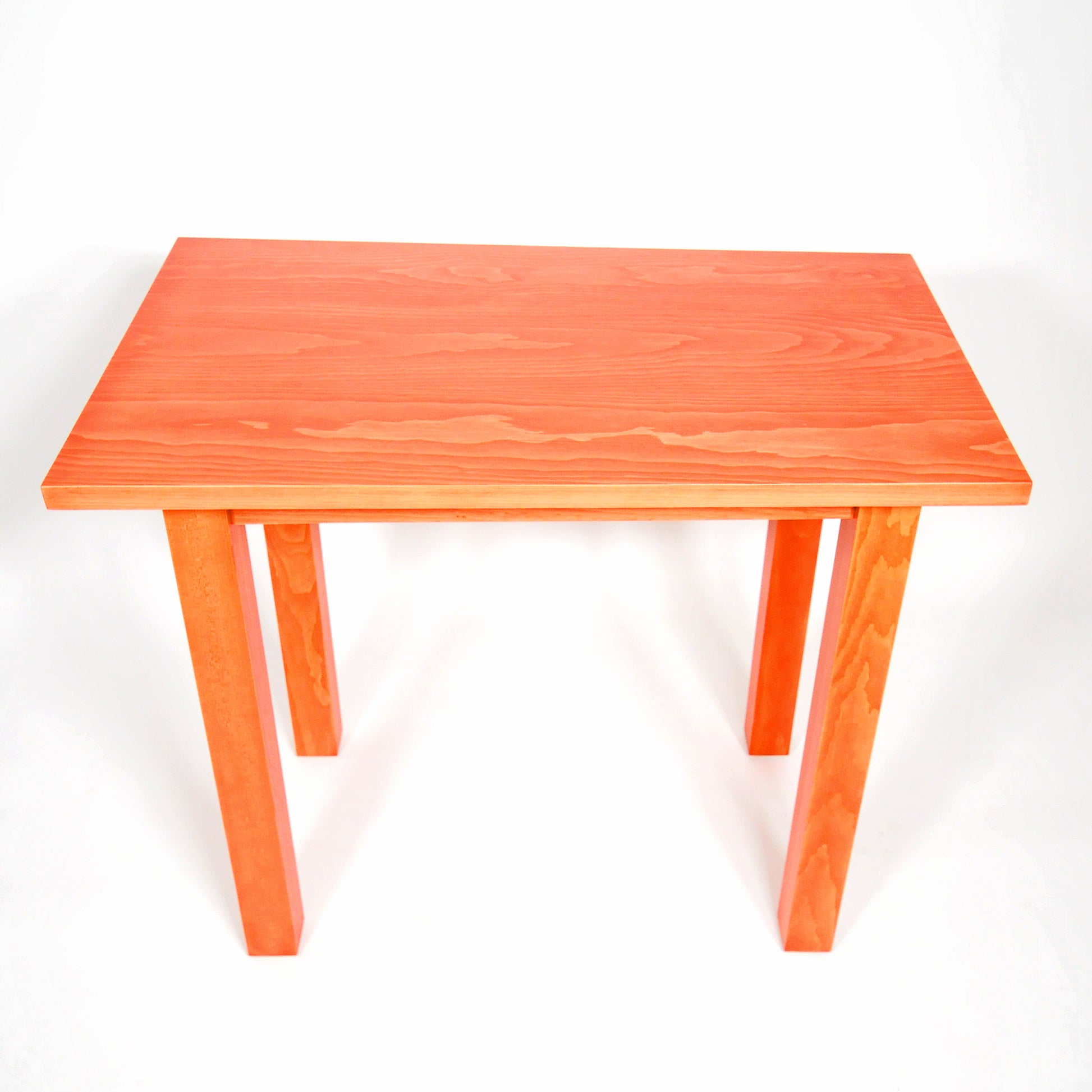 The Shutter Breakfast Table is 36"W x 24"D x 29"H. It's just large enough for breakfast for 2 people. A light lunch for 2 people. And will manage a modest dinner setting for 2 people. A great little table for a couple with a small apartment. Will also work well as an accessory side table in a kitchen or dining area. The legs are removable for an easy transport. The table is shown in "Cockerel" but is available in all 10 colors. This piece is easily customized.